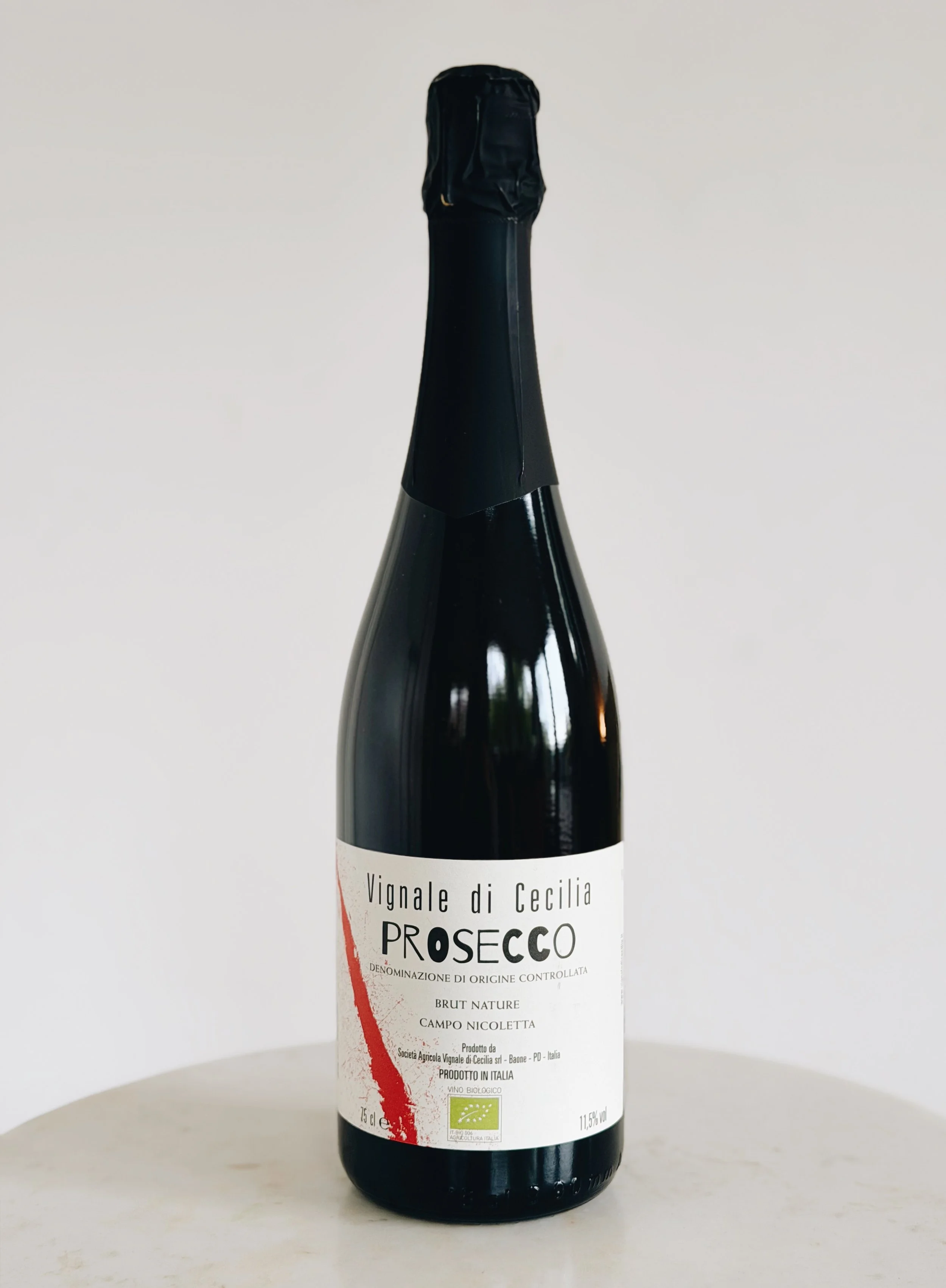 100% Glera Brut Nature from a small organic farm in the Euganean Hills, in Veneto. Dry with bright pear notes on the nose and a steely, mineral and earth-driven palate.